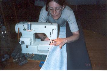 When the time came to do the interior you guessed it Joanne was right there, here she is sewing up the headliner. |