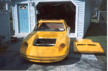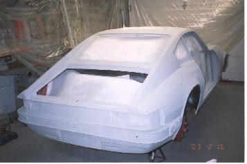 Now this was fun, 3 coats of PPG sealer and it was on to block sanding and high solids PPG primer. Please note a fiberglass car is not very straight. With 4 weeks spent on block sanding the car was looking very good or I was losing my mind... |